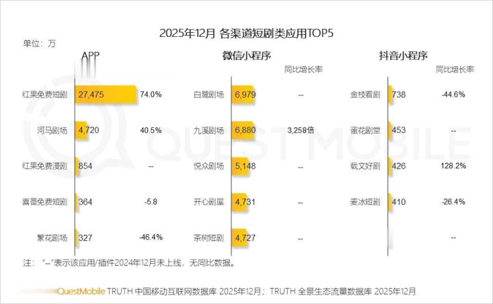 QuestMobile数据显示,截至2025年12月,短剧的月人均时长已达到26.09小时,在典型内容消费APP行业中排名仅次于短视频。