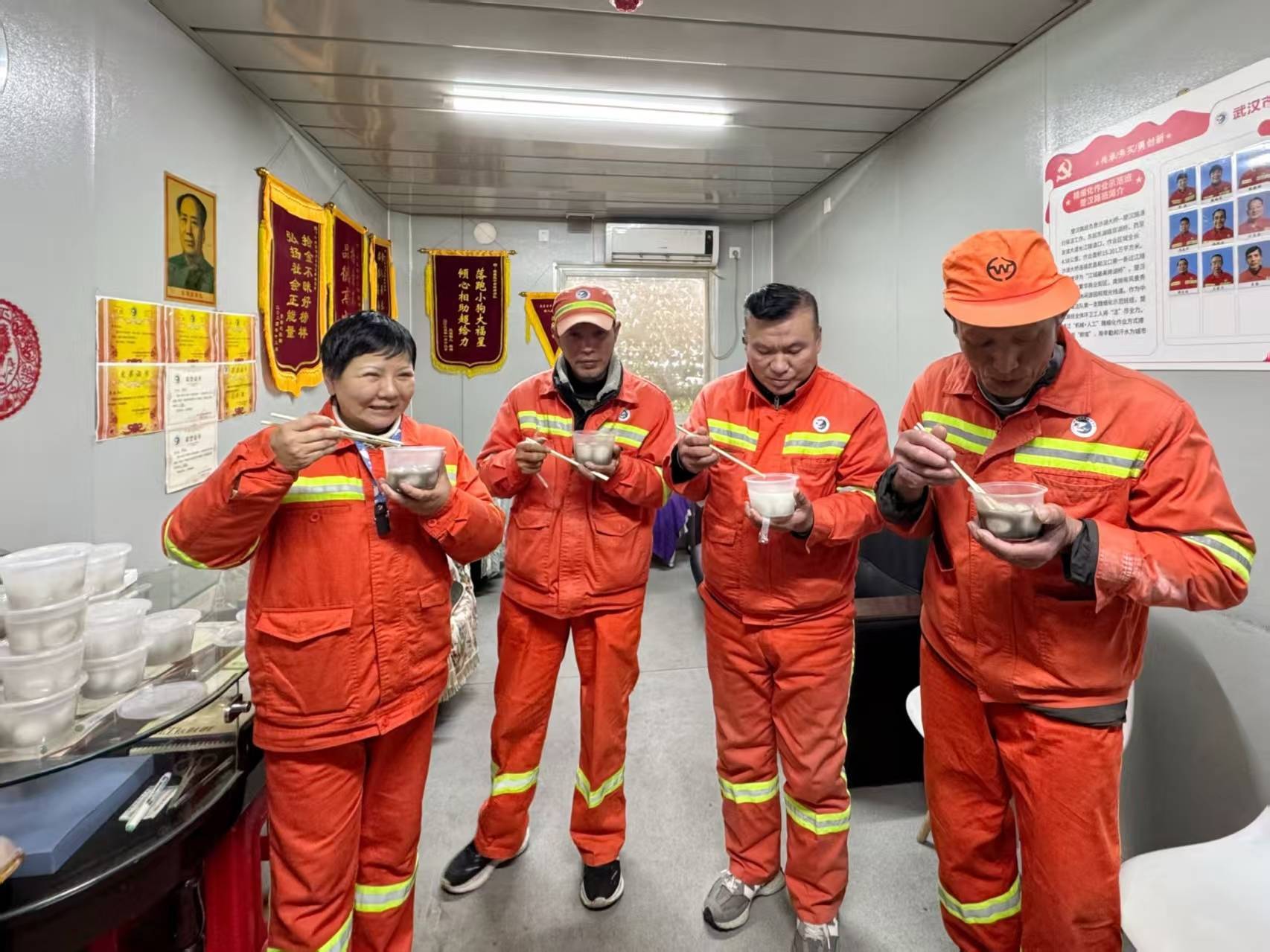 而在武昌区城管执法局中南路清洁队,队里早早就开始筹备“元宵节送汤圆”暖心慰问活动,让300余名坚守一线的环卫工人都吃上了一口热乎的汤圆。
