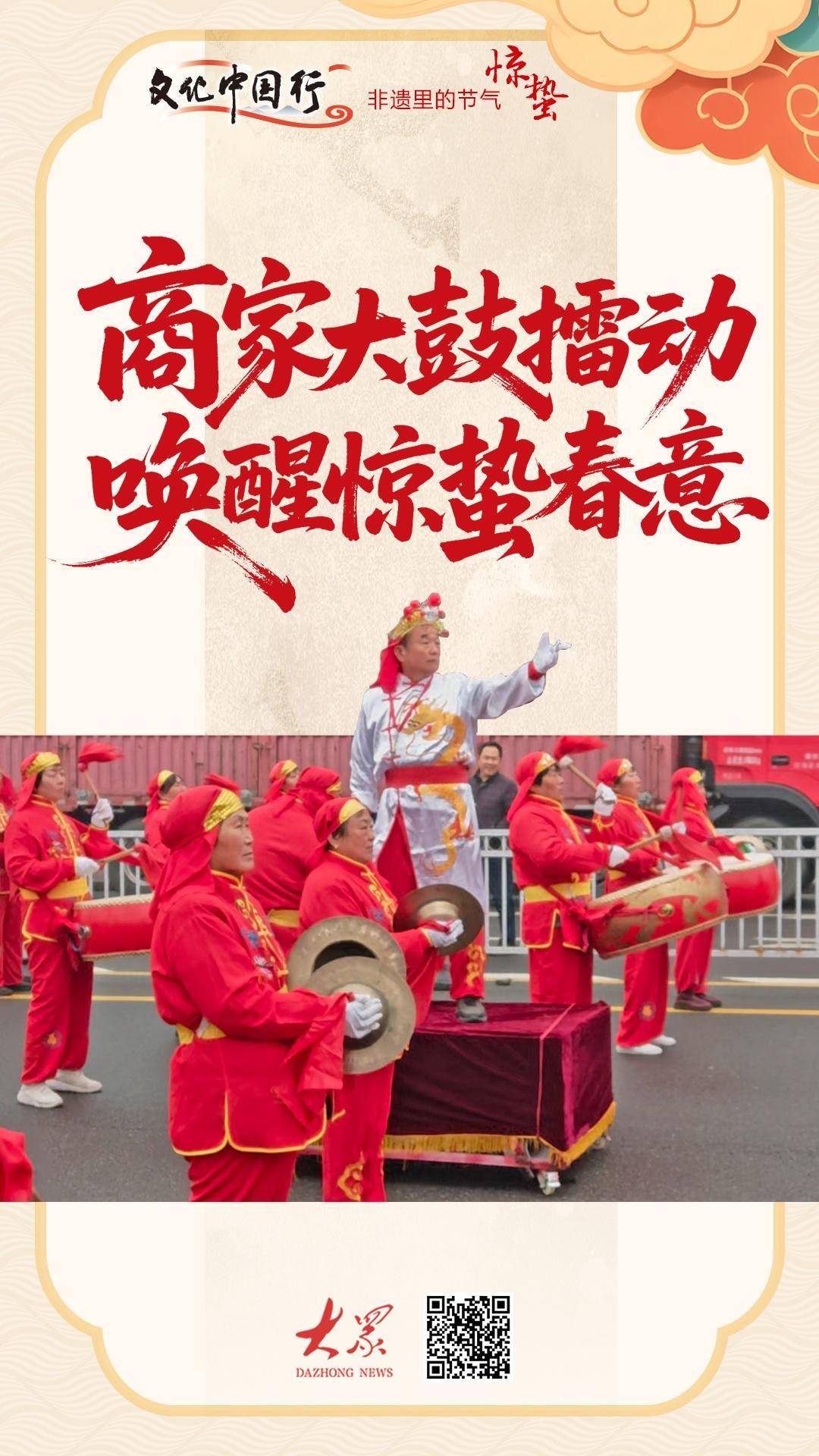 惊蛰是仲春之始,天地回暖,蛰虫惊走,万物萌动。在淄博,已有近300年历史的商家大鼓,早已成为当地人心中的“惊蛰春雷”。商家大鼓源于清朝乾隆年间,盛于清朝末年。据说当年一户商姓农家制鼓、打鼓最早,且鼓谱优美,大鼓易制好学,所以后来制鼓、打鼓者沿用了商姓农家的鼓型和鼓谱,“商家大鼓”由此得名,如今还成为省市两级非遗代表性项目。