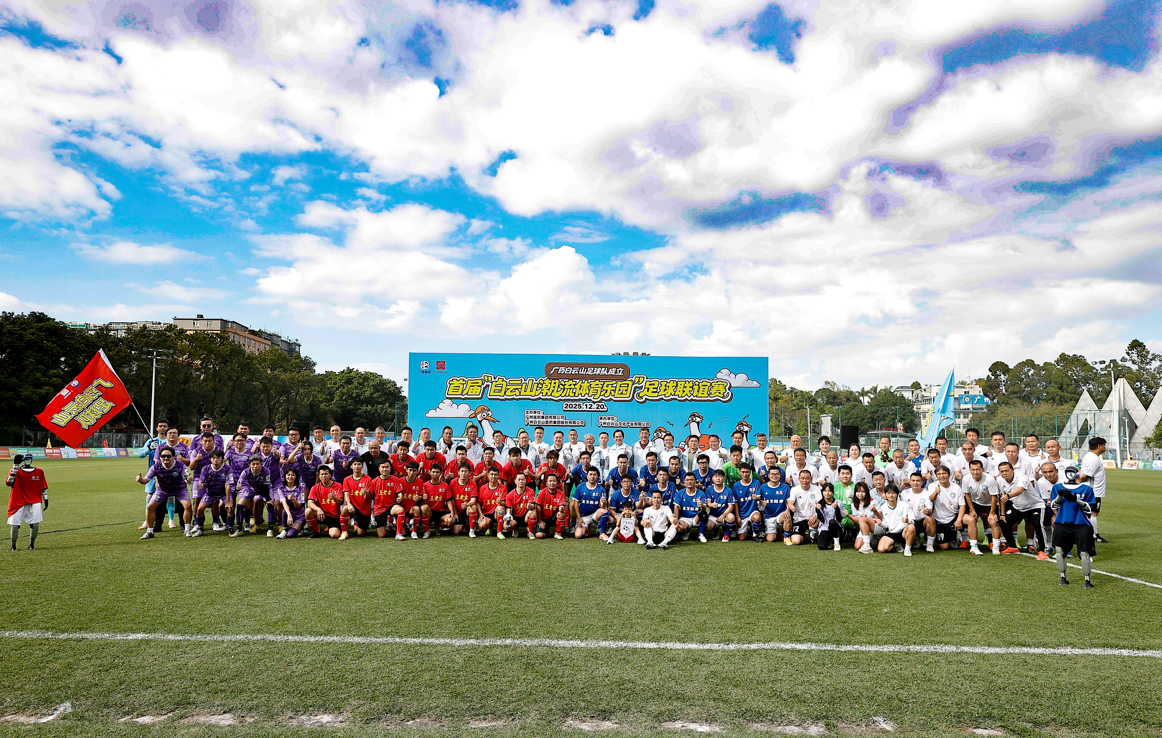 12月20日,在广州白云山潮流体育乐园,广药白云山足球队成立仪式暨首届白云山潮流体育乐园足球联谊赛举行。参赛球队分别为广州白云山足球队红队、蓝队,广东宏远传承明星元老队和全国足球记者联队。广东足球名宿、前国脚郭亿军、吴群立、谢育新、王惠良和伍文兵等人均出席了当天活动。
